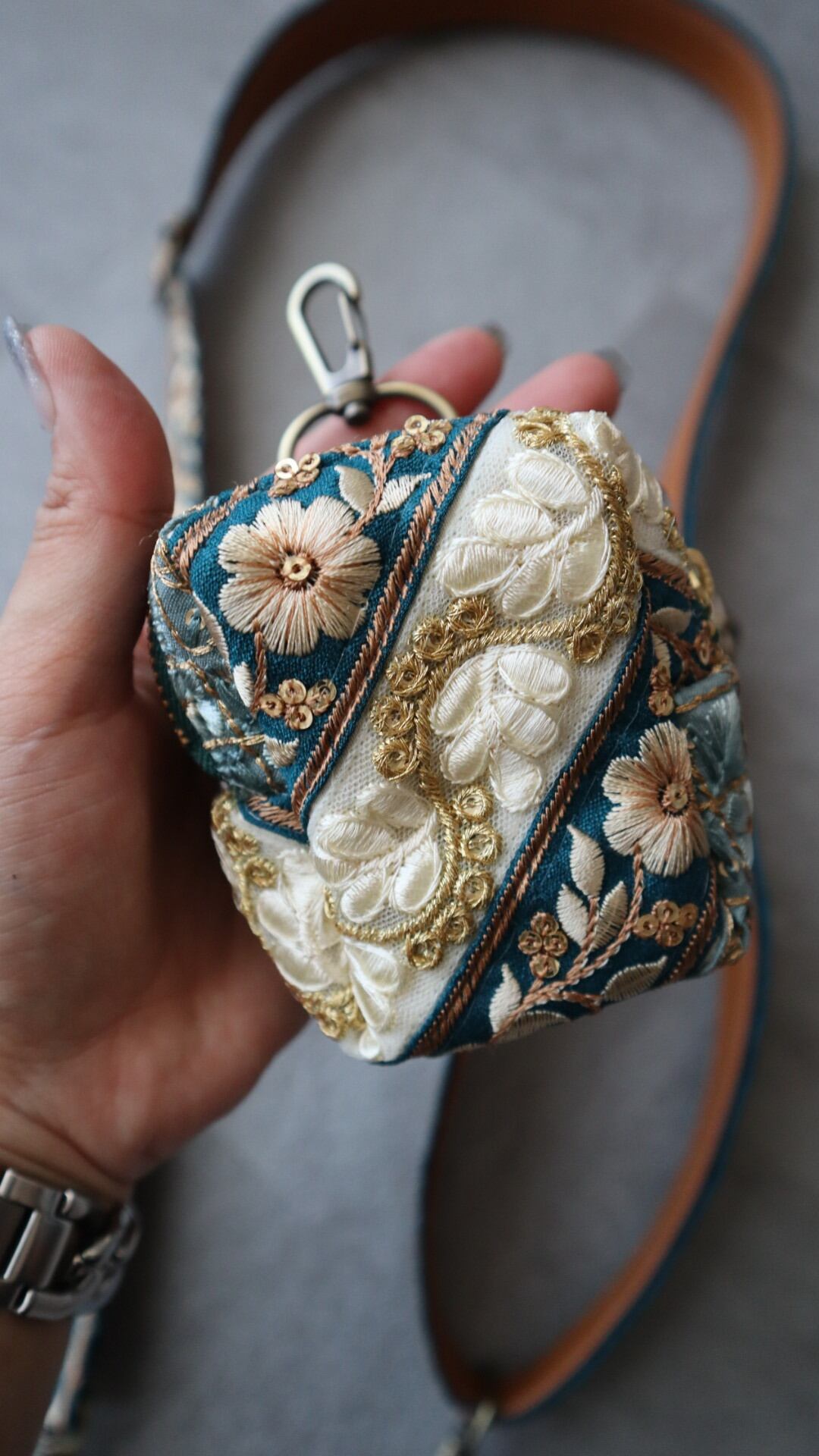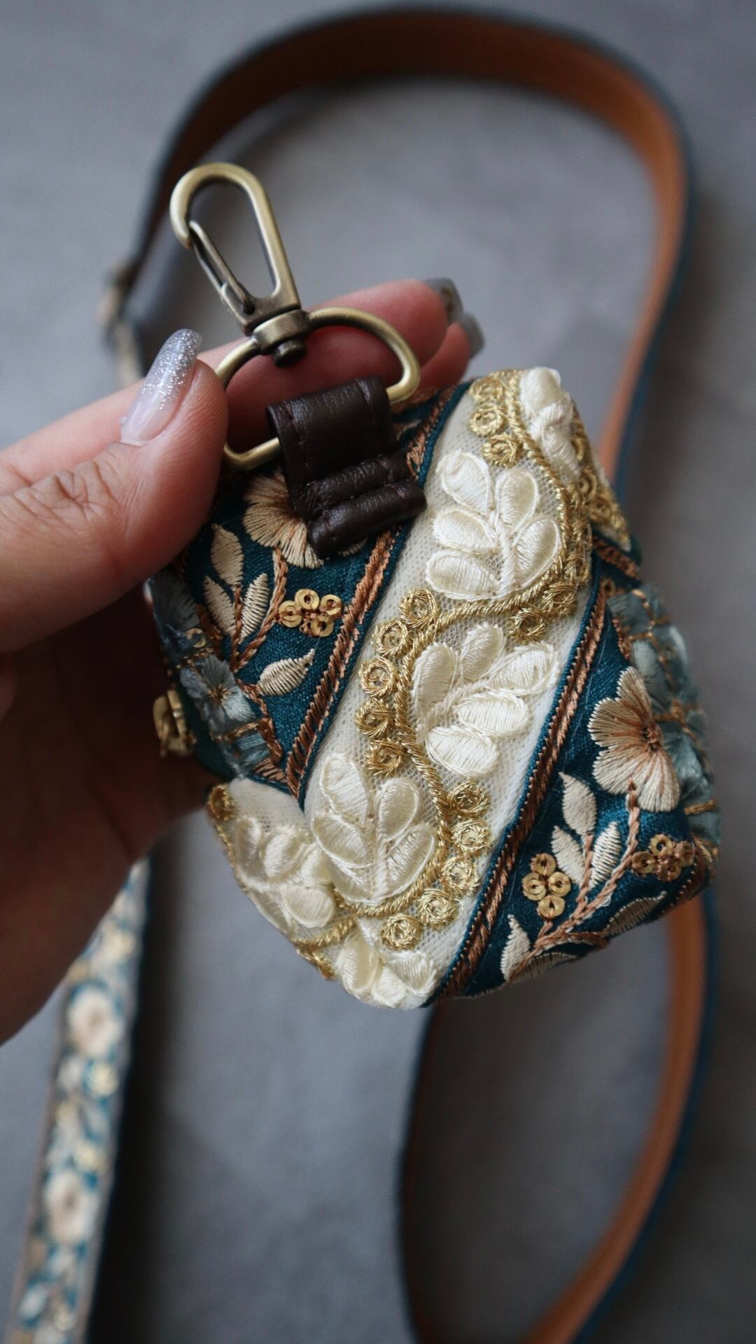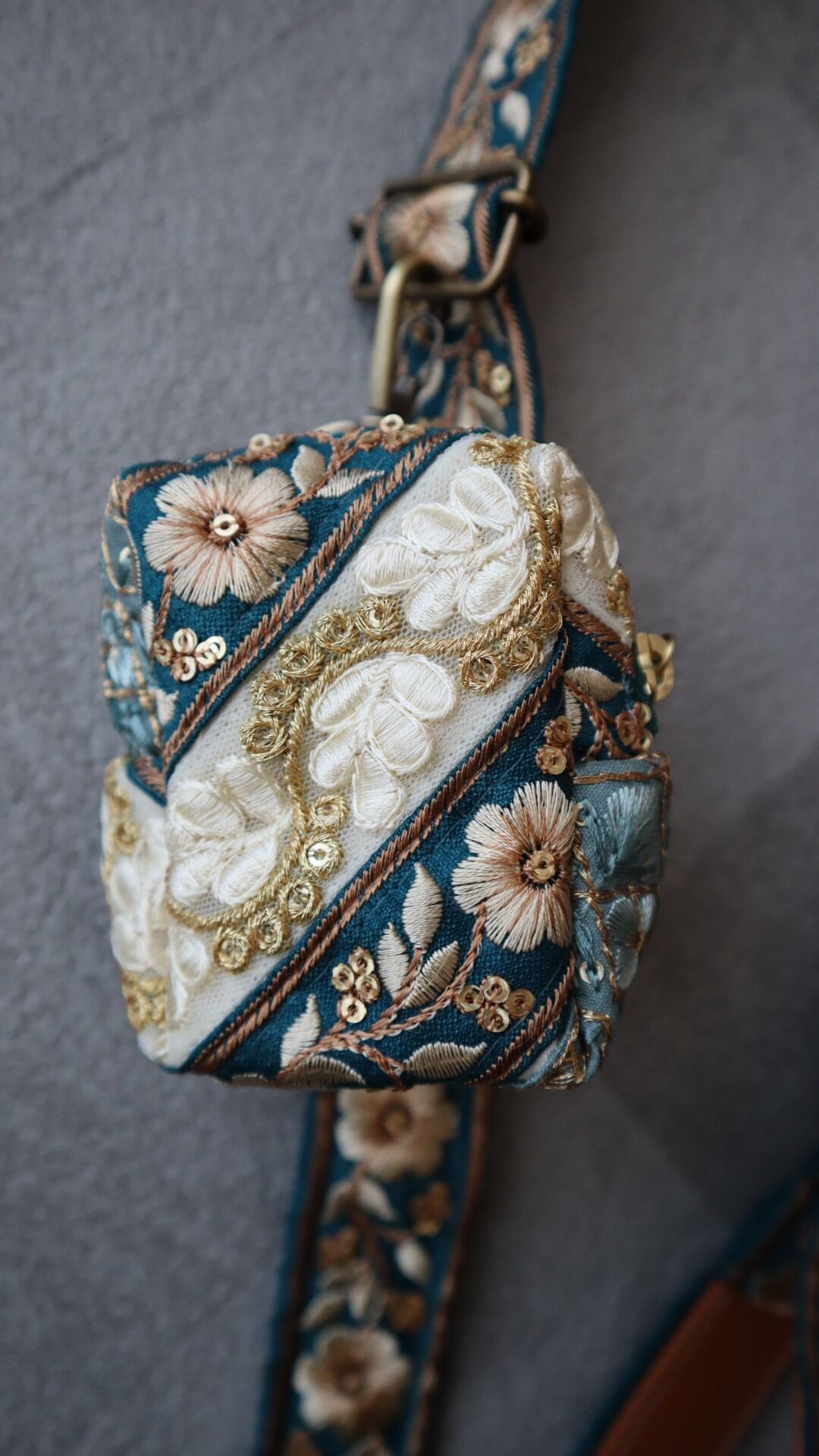 素材:インド刺繍リボン/合皮/真鍮金具
