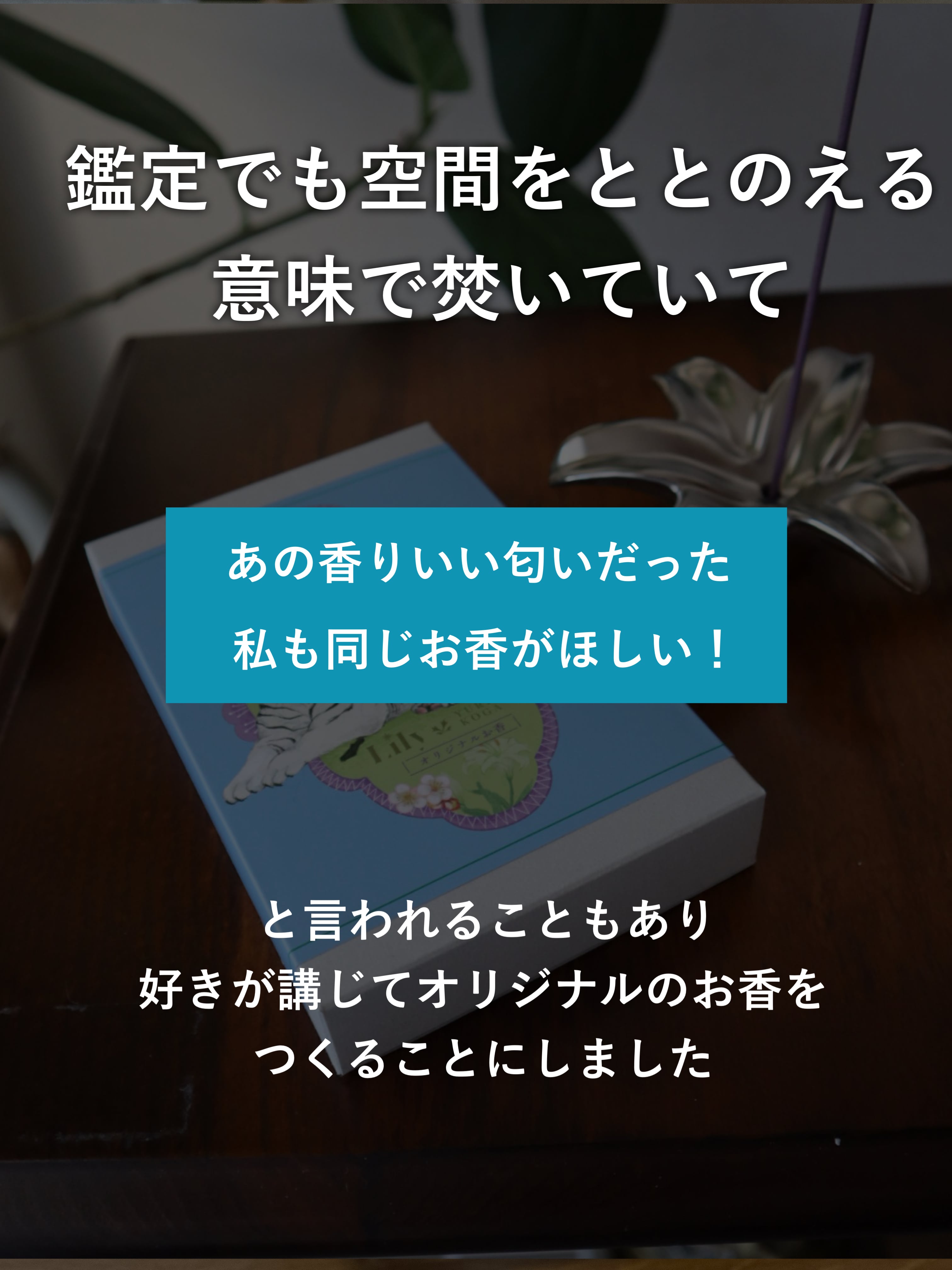 お香を焚くことで、空間が清められ、気持ちがリセットされ、自分をじ直すきっかけになるよう願っています。