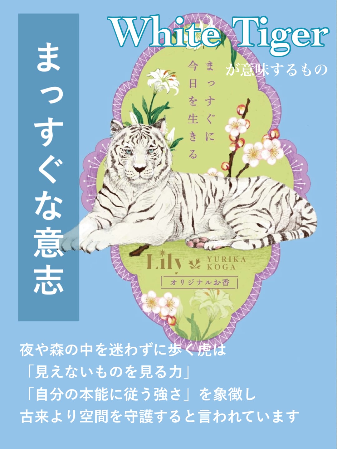 百合は私自身とブランドを象徴し、白虎は空間と心を守る存在。梅の香りは、春の訪れのように、静かに前向きな気持ちを呼び起こします。