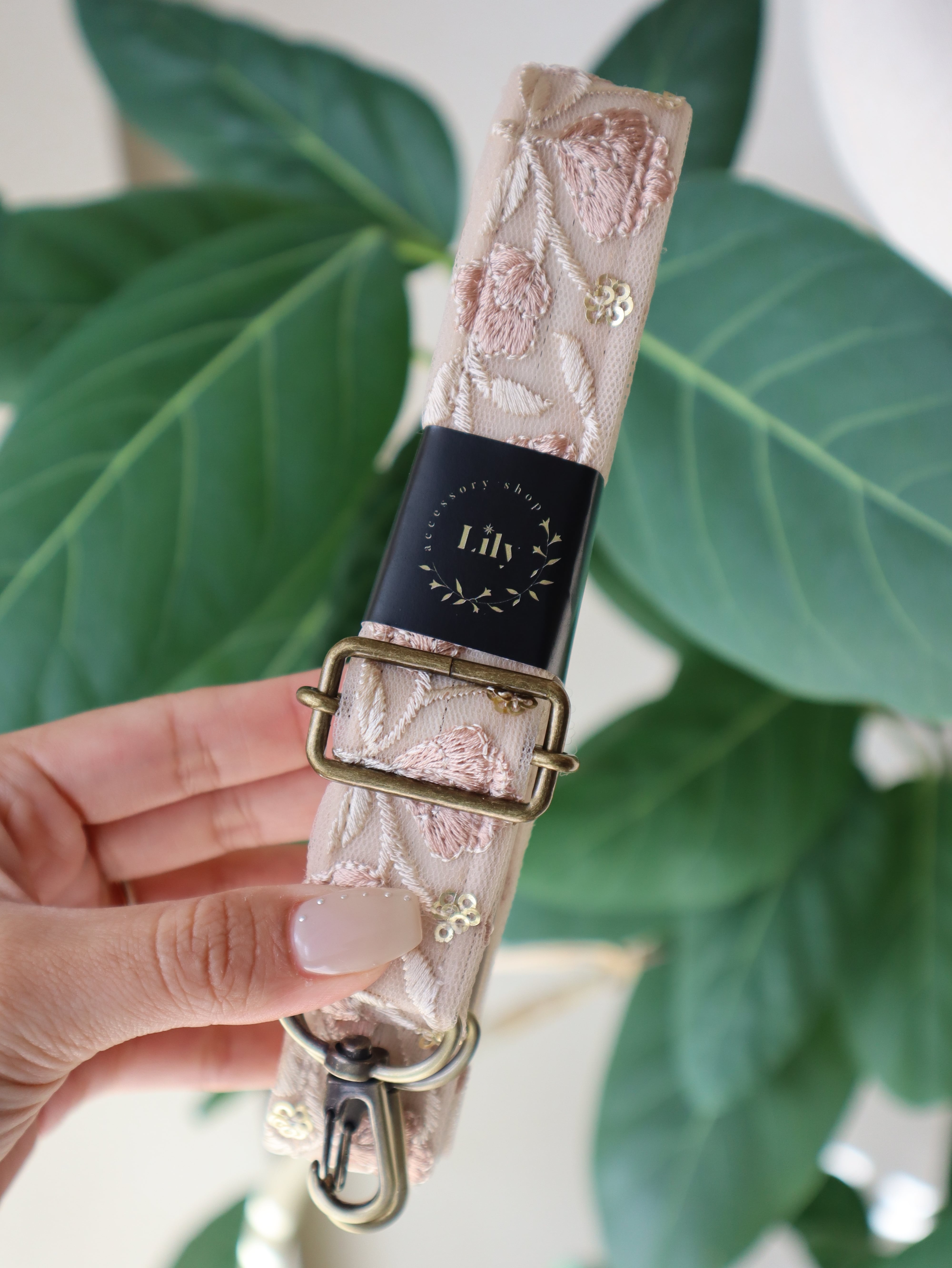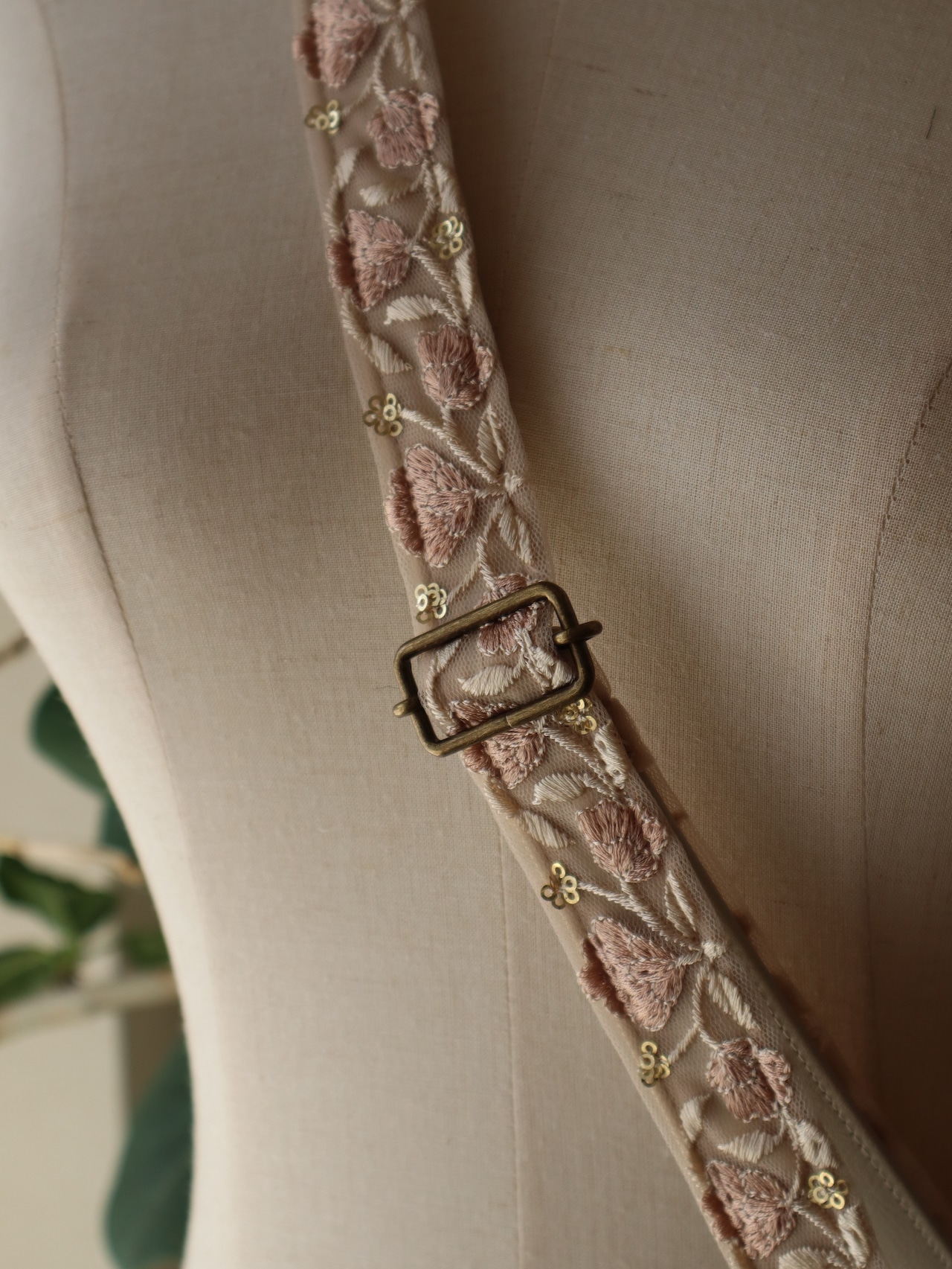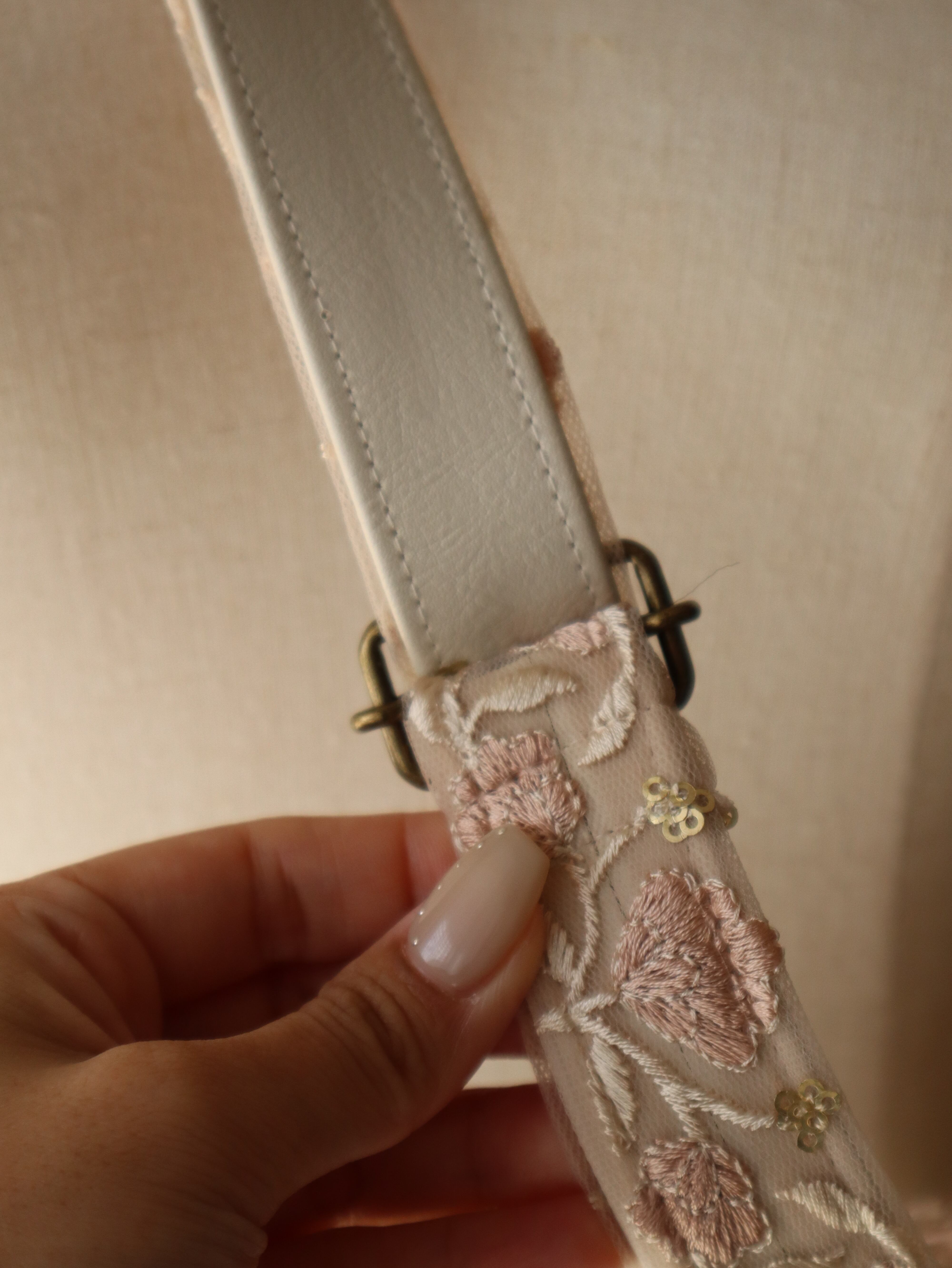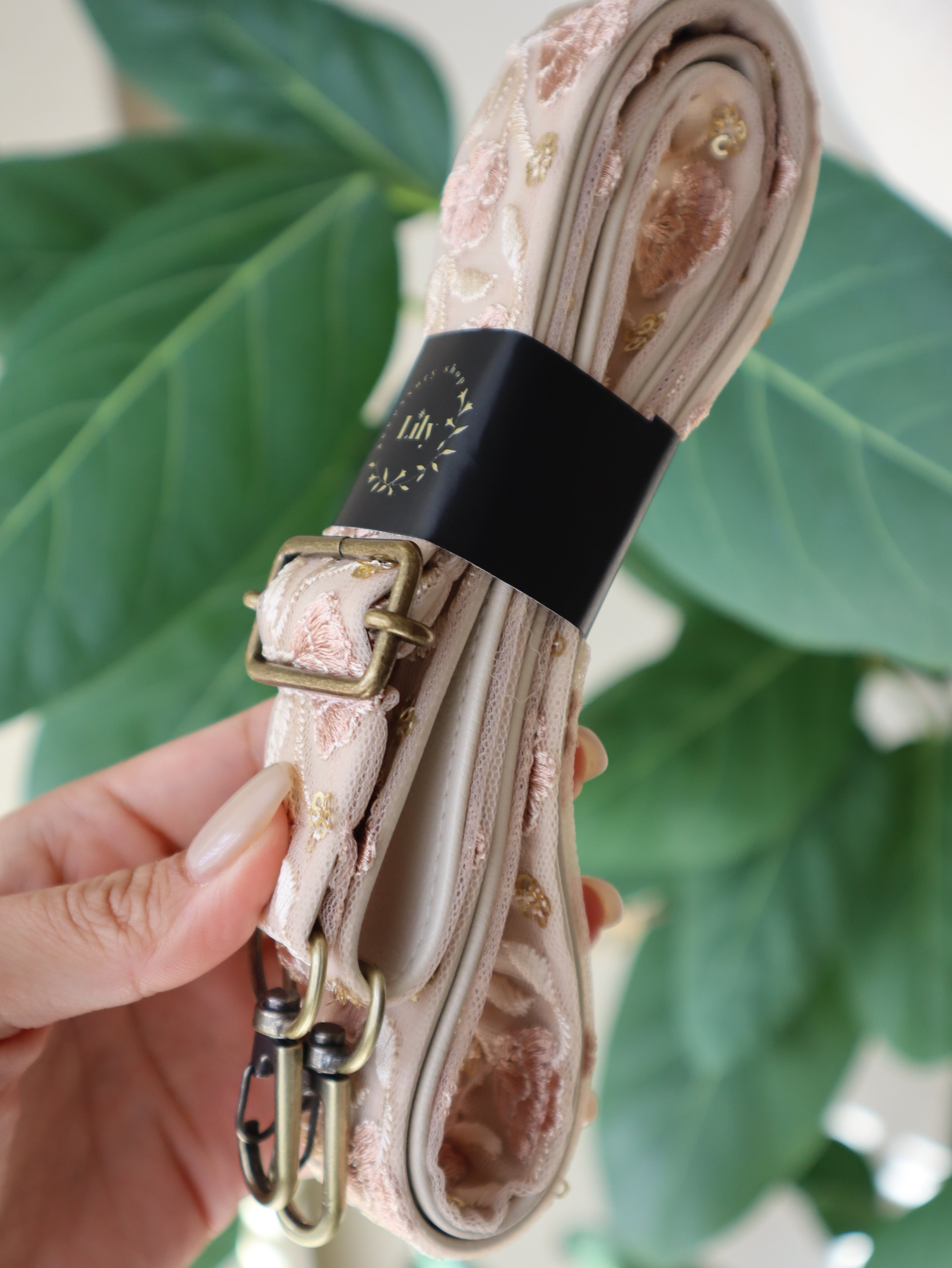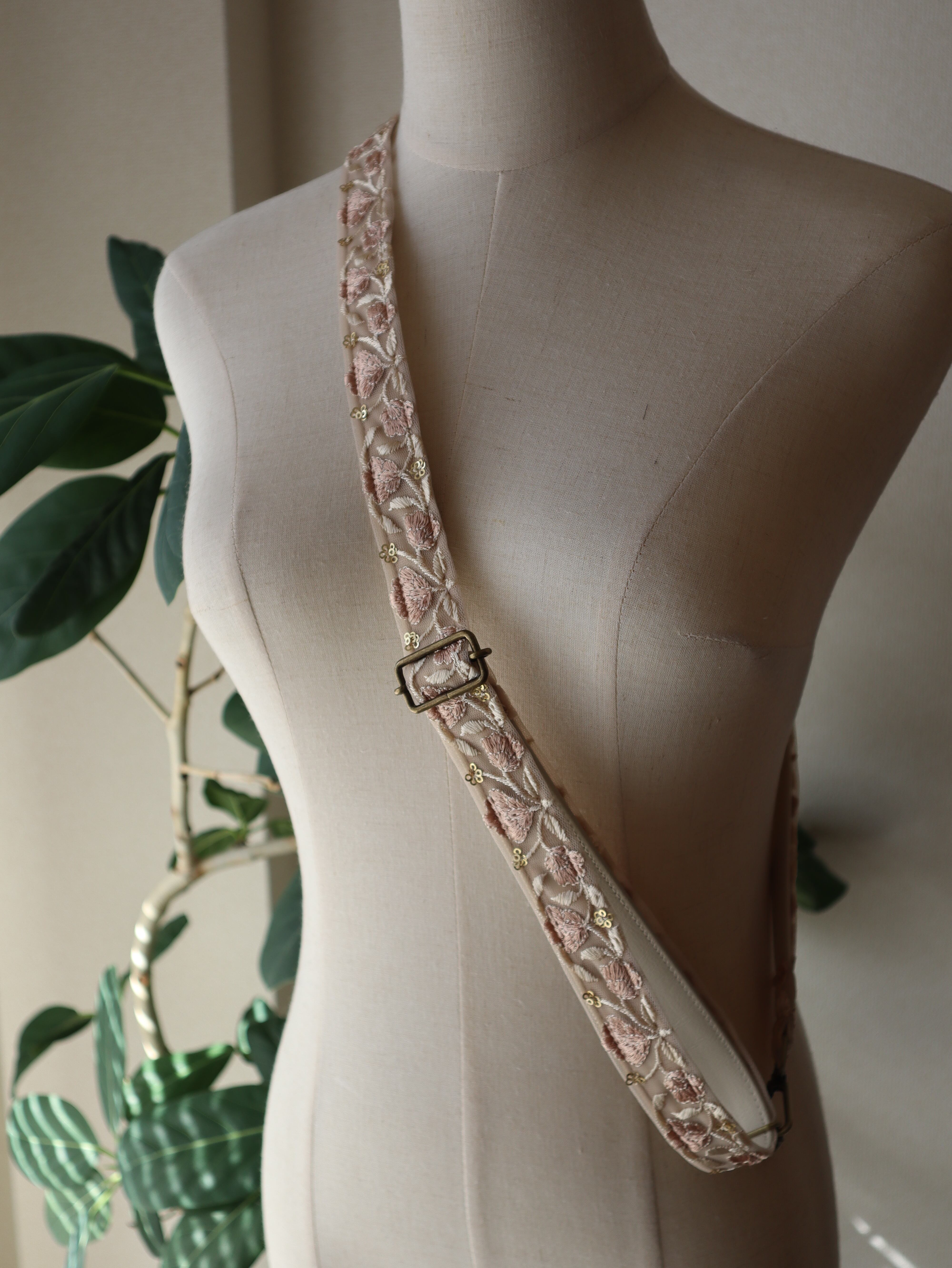 ピンクベージュ【サイズ調節可能】リボンストラップ