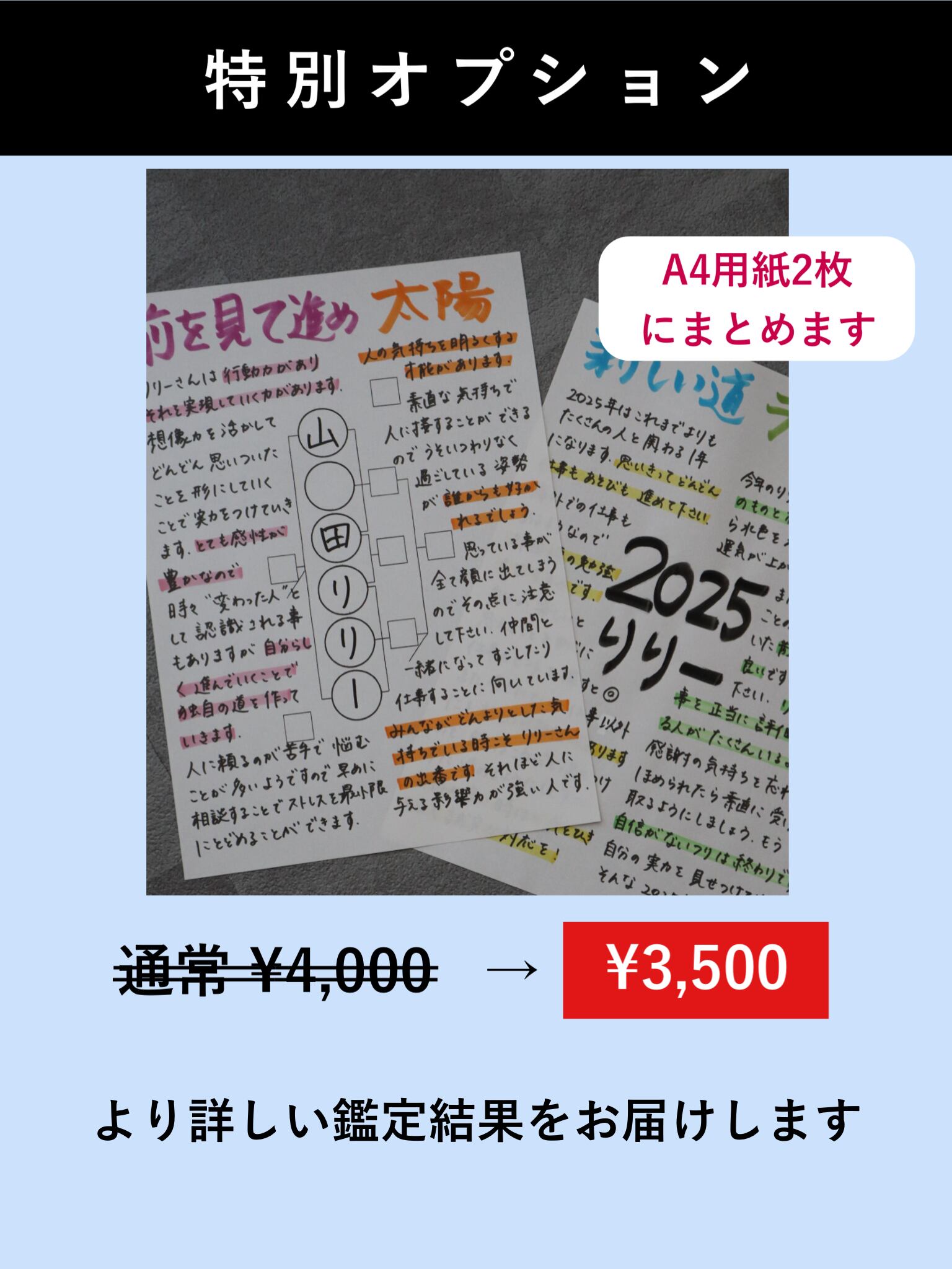 オプションの文章鑑定を追加される場合は、さらに10日前後お時間をおただいております。