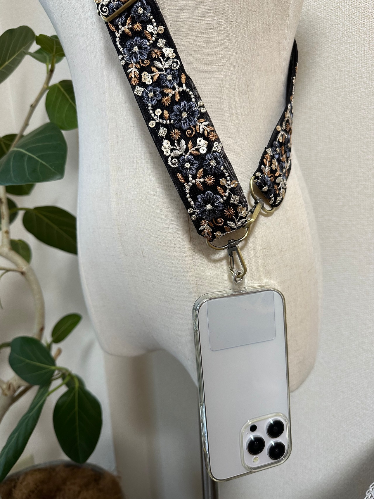 スマホ・カメラはお持ちの仕様によって、使用するのに付属品が必要です。リボンストラップの金具はフック式ですので、ご購入前にご確認ください。
