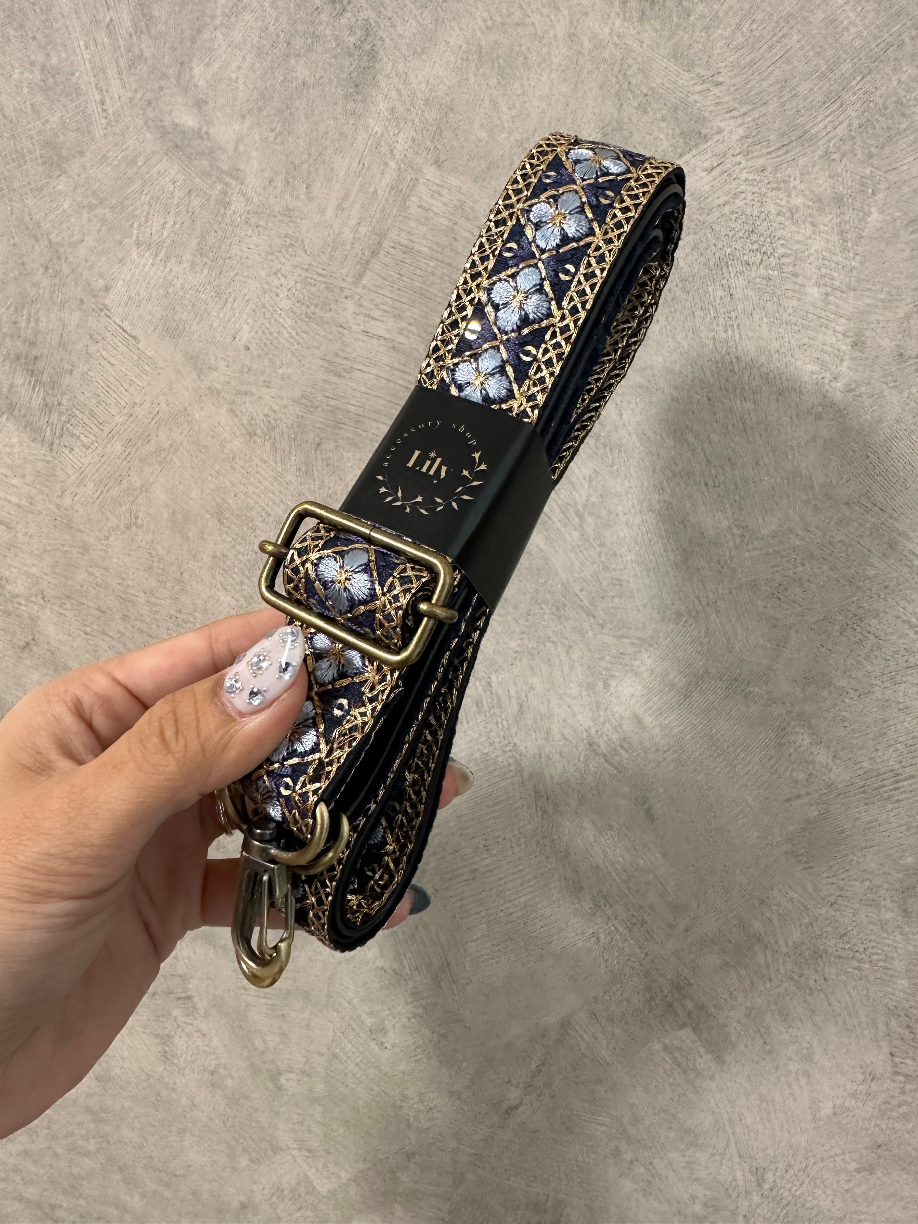 再入荷!青×黒【サイズ調節可能】リボンストラップ