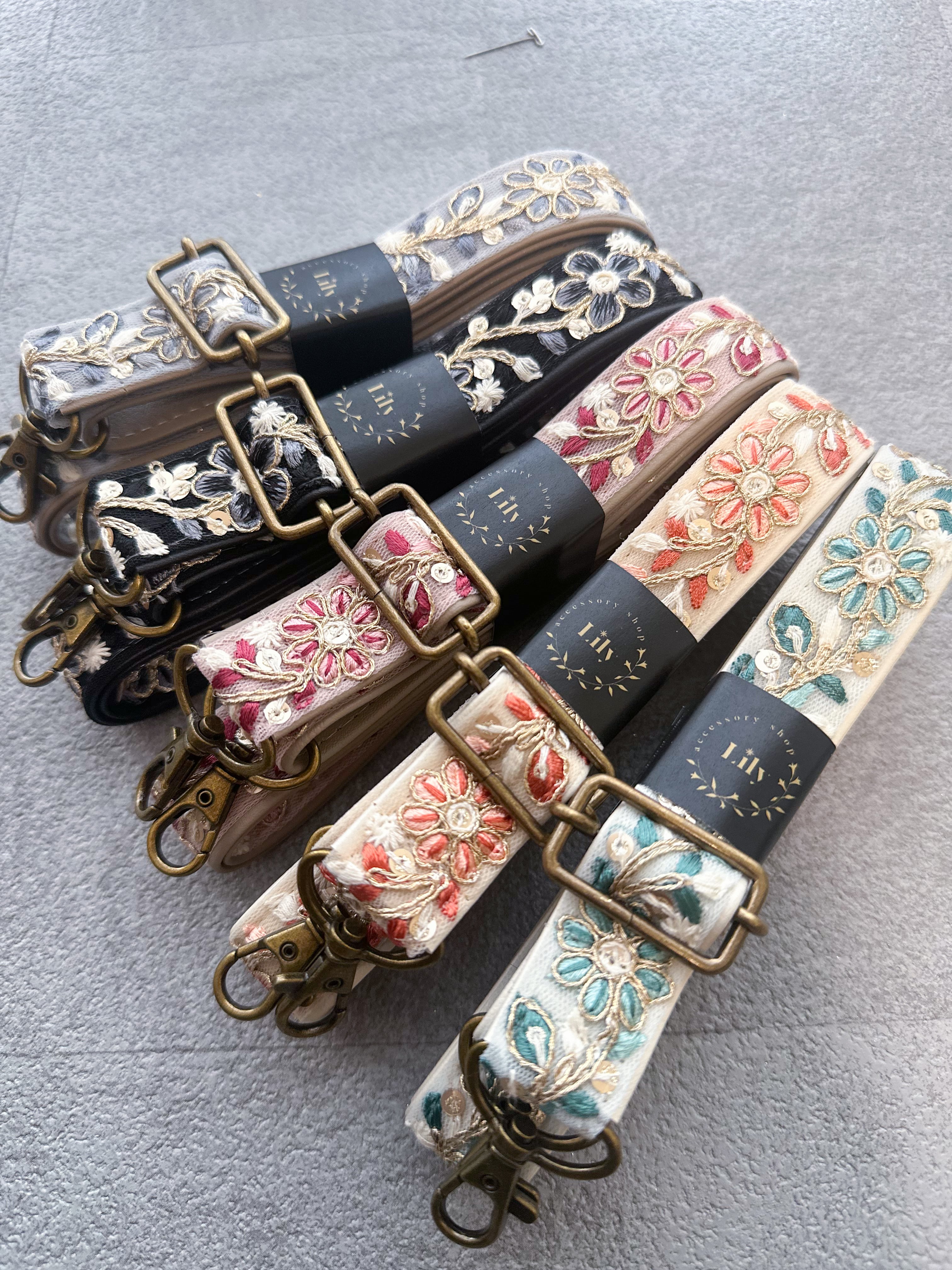素材:インド刺繍リボン/合皮/真鍮金具