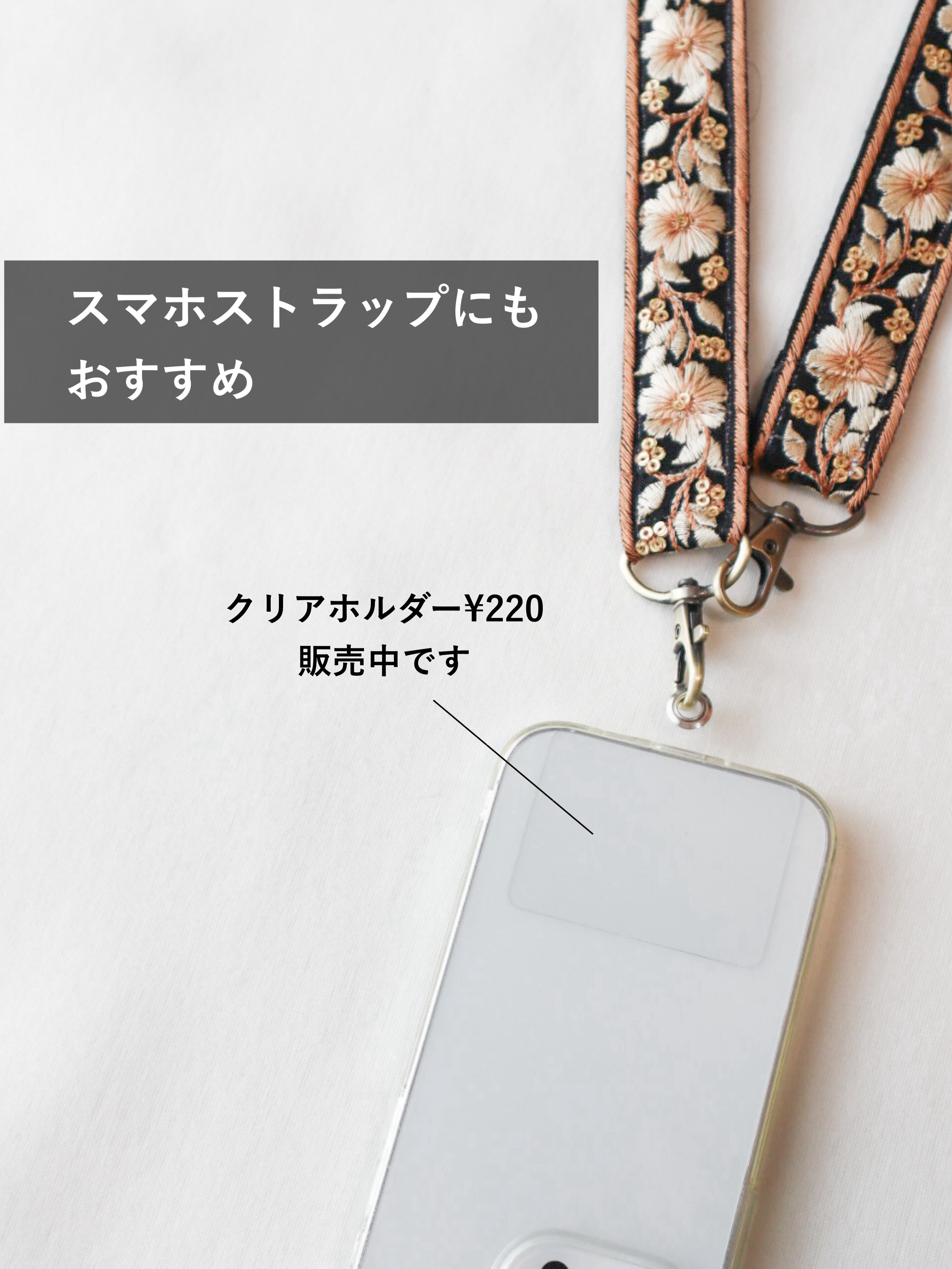 なお、スマホケースとリボンストラップをつなぐ「ホルダー」は現在別ページにて販売中です。